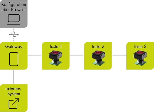 All types of Flexitast buttons can be configured via web browser. To do this, the individual button or the gateway of the Flexitast system is connected to a web-enabled device via USB cable and uploaded into the frontend. Once the connection to the Flexitast or gateway is established, the individual button or the system can be configured.