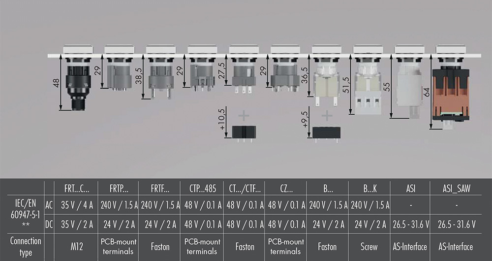 ** maximum voltage or current values, depending on the type they may also be lower, e.g. for gold-plated contacts or depending on the number of connections