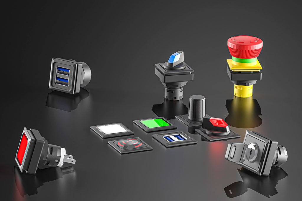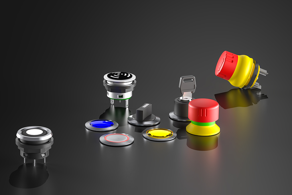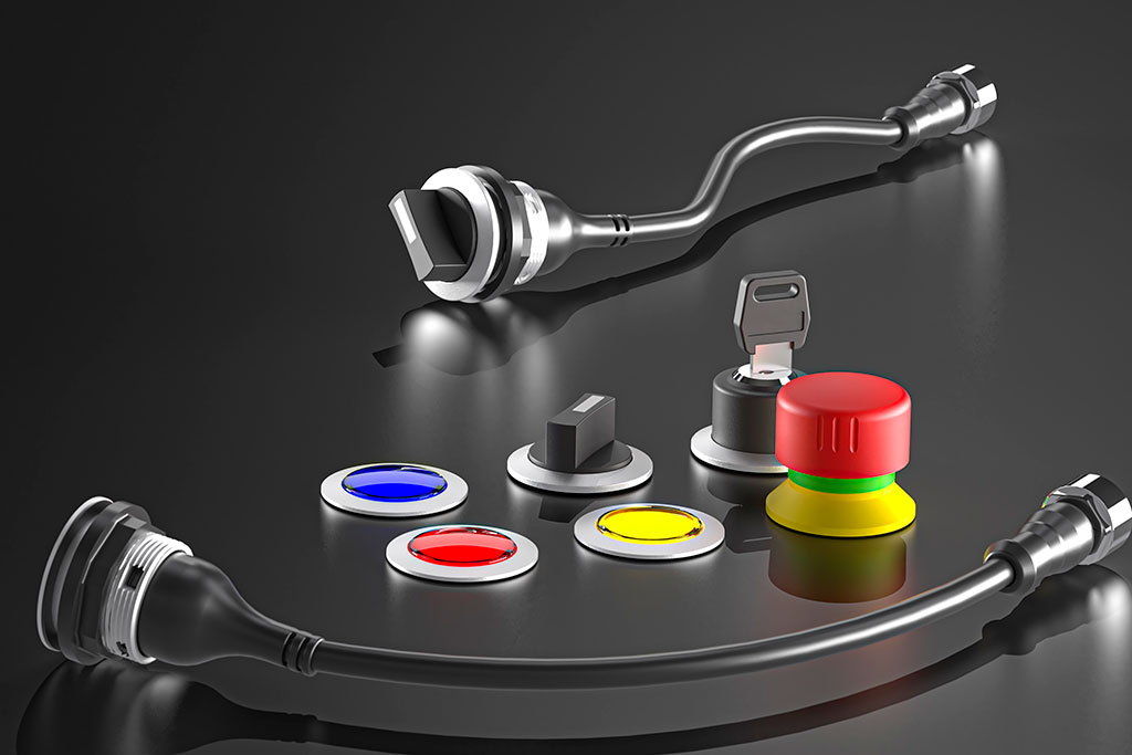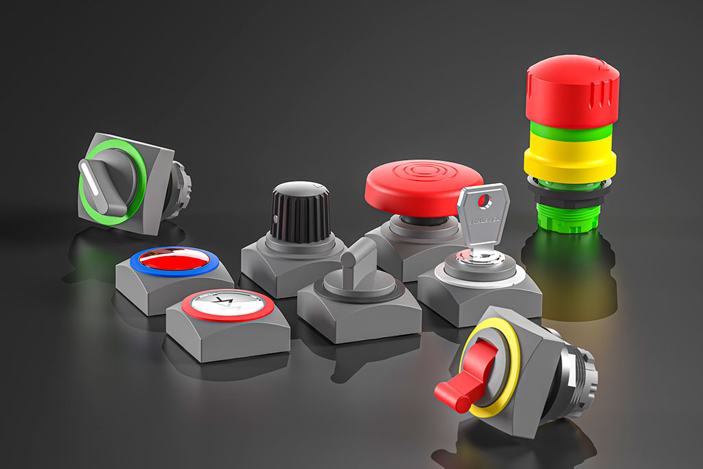 L'actionnement d'un dispositif de commande permet de modifier son état de commutation et de déclencher une fonction associée sur une machine ou une installation. Les dispositifs d'arrêt d'urgence, les boutons-poussoirs, les sélecteurs et les commutateurs à clé, mais aussi les éléments de commutation capacitifs ou sans contact sont des représentants typiques des dispositifs de commande.