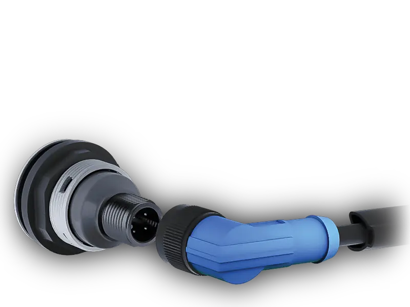 Selon l'application, des connexions M12 avec 4, 5, 8 ou 12 pôles sont disponibles. Cela permet de transmettre de manière faible aussi bien des fonctions de commutation simples que des signaux plus complexes.