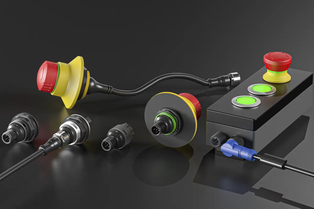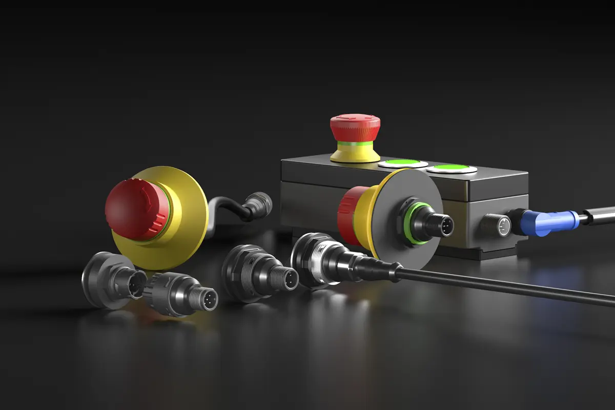 Le raccordement M12 est un connecteur rond standardisé industriellement, synonyme de connexions compactes et robustes. Pour les appareils de commande tels que les boutons-poussoirs ou les boutons d'arrêt d'urgence, il permet un câblage rapide, sans erreur et enfichable, particulièrement adapté à une utilisation décentralisée.